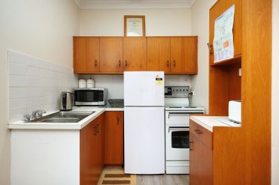 The functional kitchen includes electric cooking and ample storage, while a split system air conditioner ensures year round comfort.