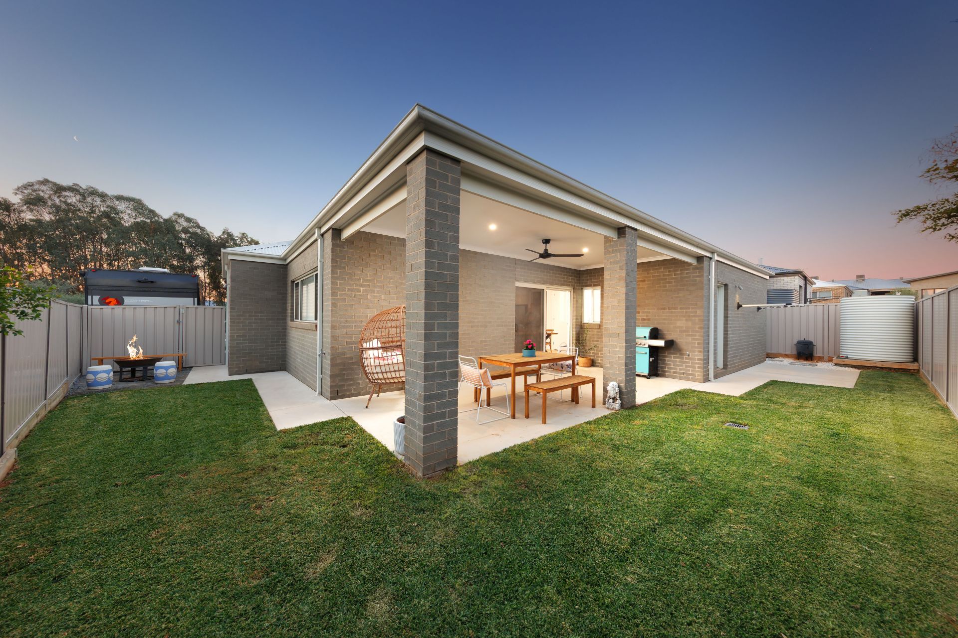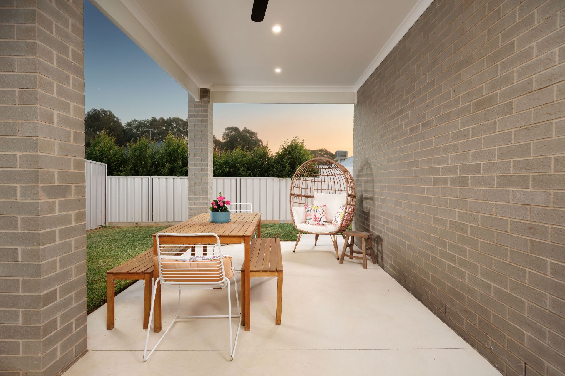 - Inviting alfresco with ceiling fan and natural gas point