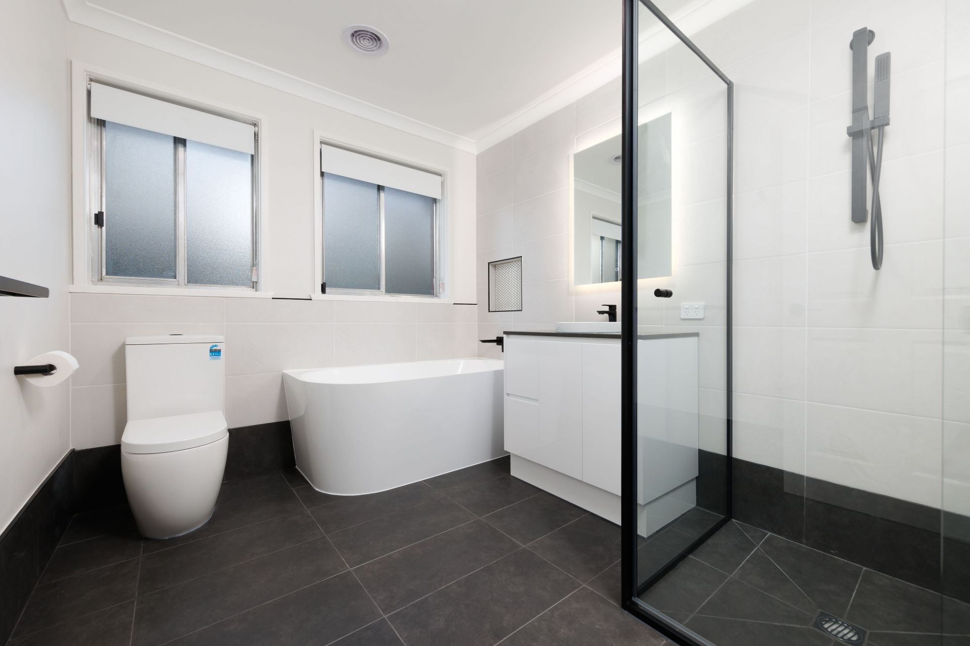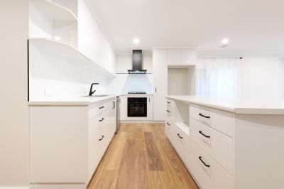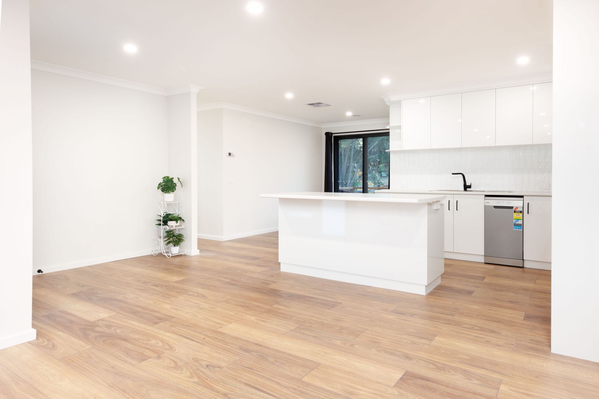 Intoxicating is the smell of new paint, floor coverings, window furnishings, added to by the new kitchen and two bathrooms. The attractive kitchen is equipped with gas hot plates, electric oven and dishwasher.