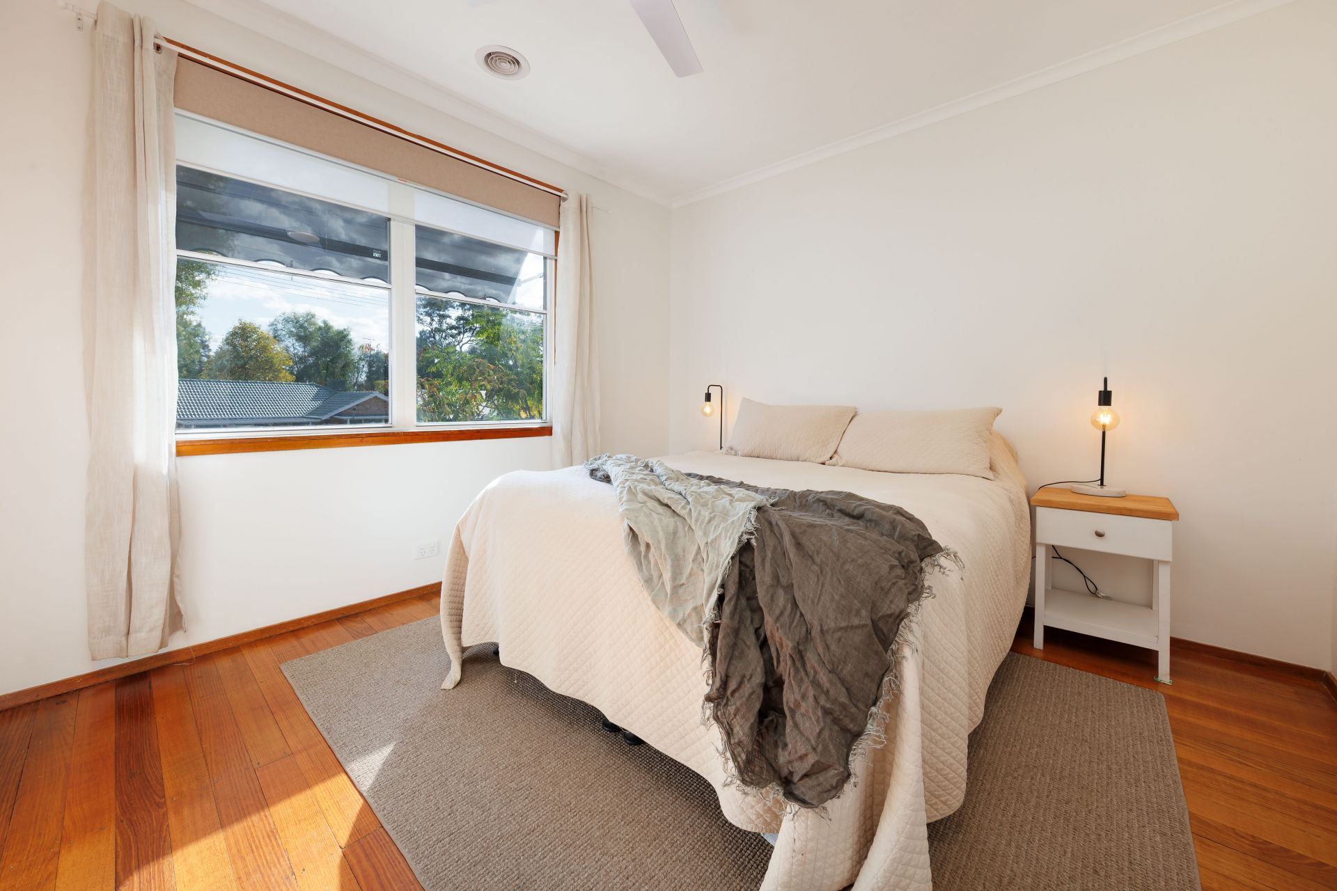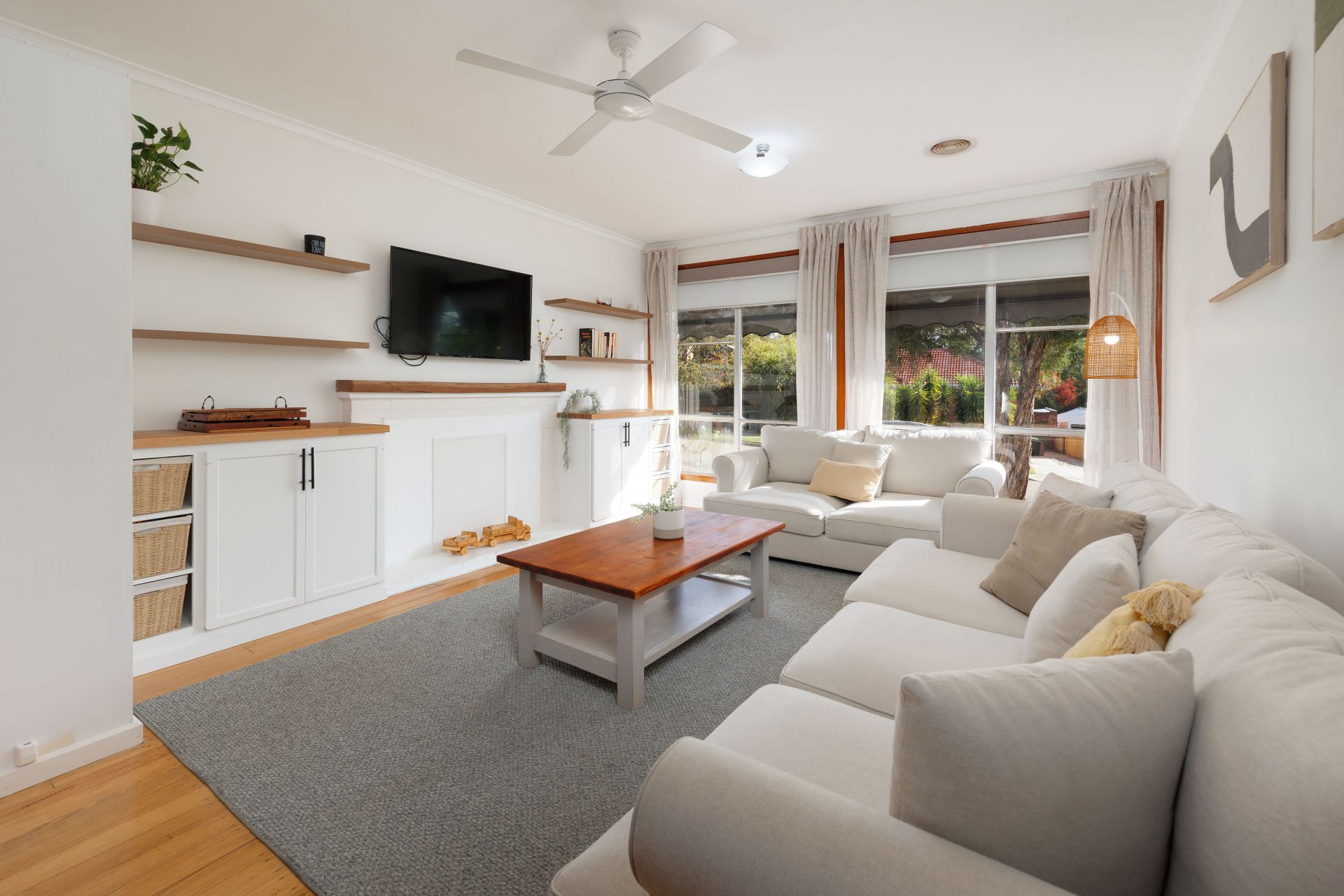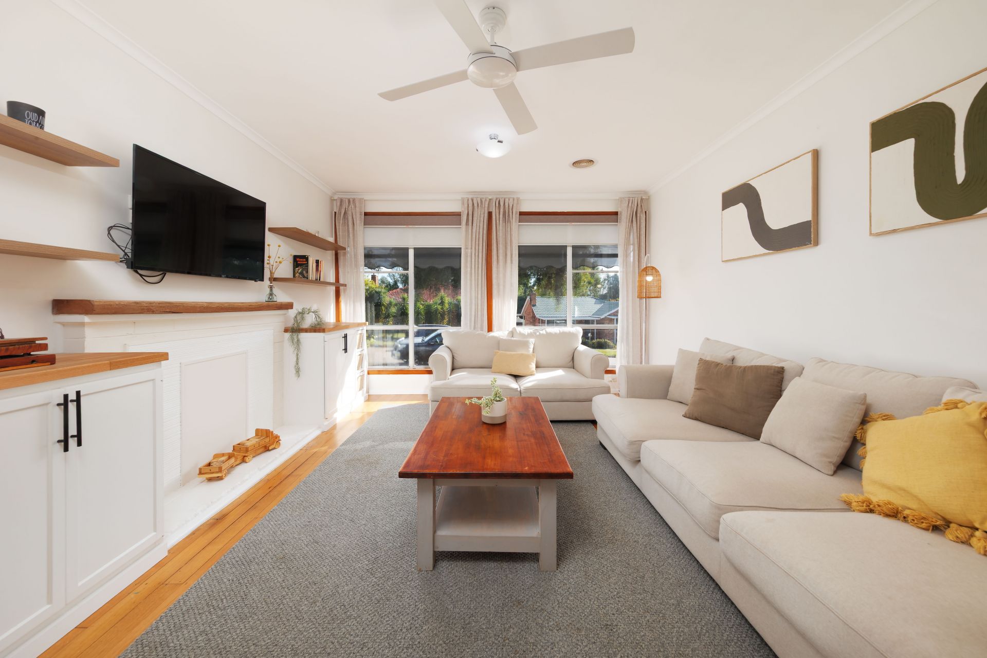 All three bedrooms include built-in robes and ceiling fans, while the light-filled two-way bathroom features a shower over bath.