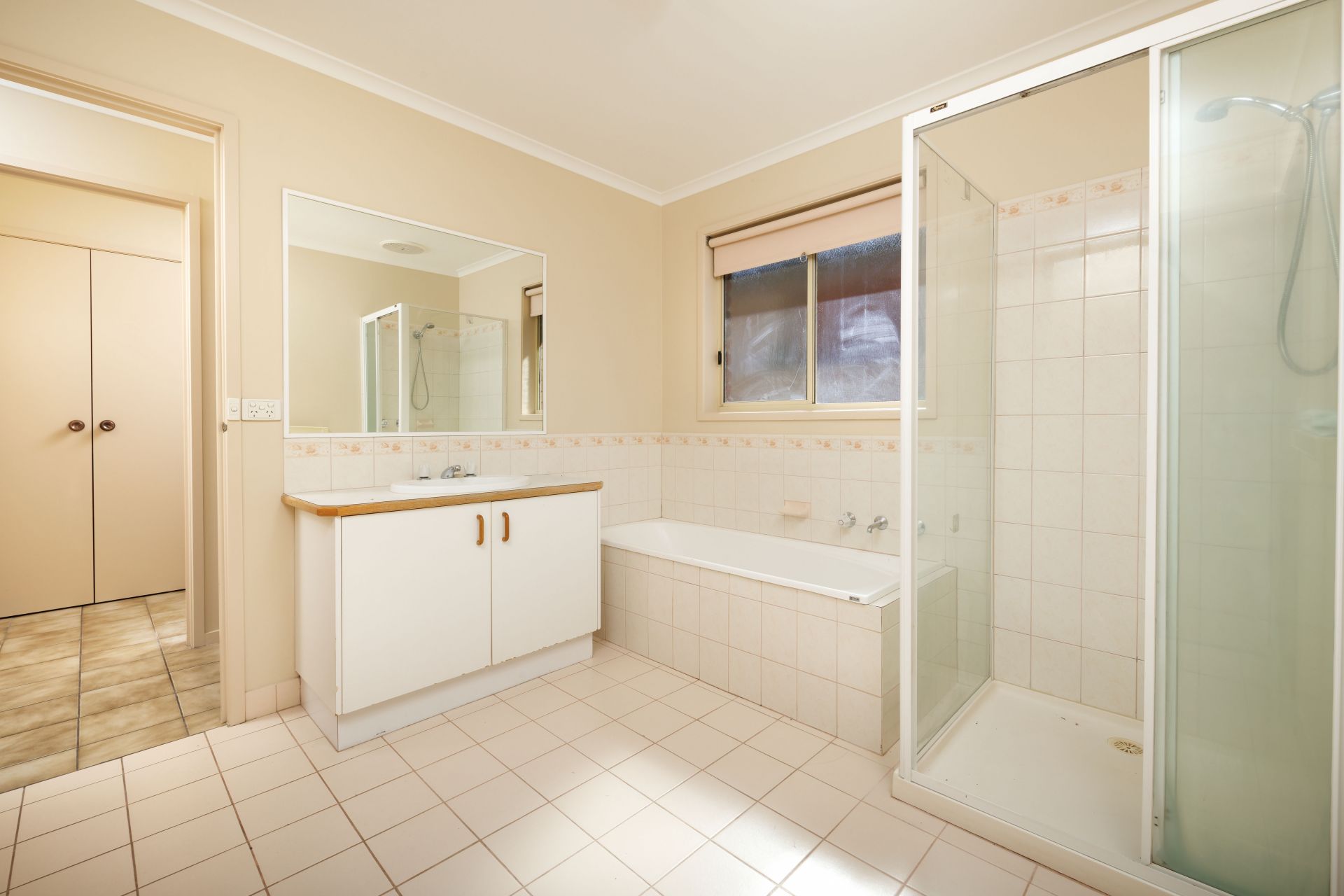 Large two way bathroom.